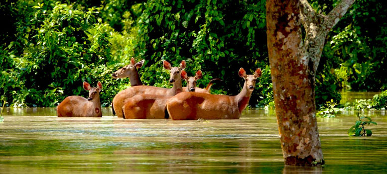 মর্মান্তিক এরকম অনেক ছবি, ভিডিও ছড়িয়ে পড়েছে সর্বত্র। যেখানে দেখা যাচ্ছে গলা জলে অসহায়ের মতো দাঁড়িয়ে রয়েছে গন্ডার, হরিণ, বাঘ, হাতি। হাতির উচ্চতা অনেকটা বেশি হওয়ায় কিছুটা স্বস্তি। কিন্তু বিরাট চেহারার গন্ডারের উচ্চতা খুবই কম।